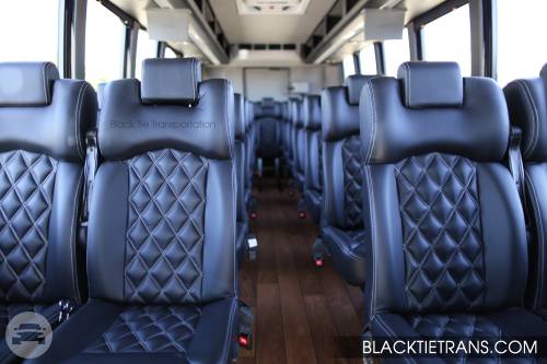 Features // This executive motor coach is configured with comfortable 2-by-2, High Back Reclining Leather Seats along a center aisle. The vehicle is air conditioned and has a sound system with mic; AM/FM radio and DVD-CD player. Equipped with seat belts. Seating // 1-31 passengers