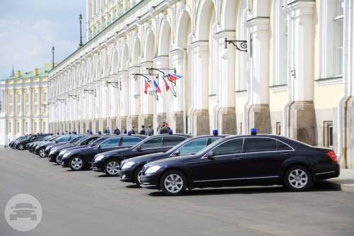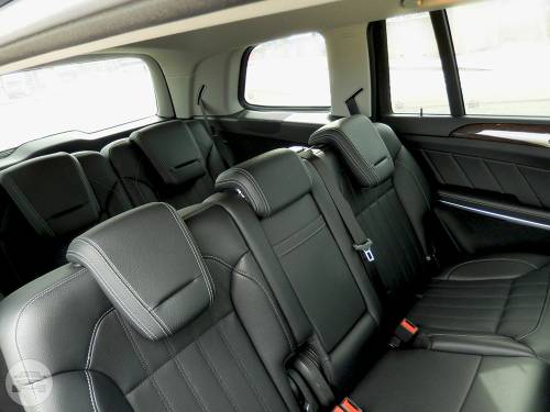 All-Wheel Drive with Distronic Cruise Control, Safe Distance Warning System, Sport/Comfort Driving Mode, Rear reclining seats, Tinted windows with power shades, Dual DVD players in the rear seats, Separate rear climate control, Internet/WiFi connection, 110 V outlets, USB and iPod auxiliary connections, Blue Tooth Connectivity to car’s stereo system, Sirius Satellite radio, CD changer in the front, DVD player in front also, Charging ports, Cooler with water, Magazines, Newspaper, and the auto body is factory stretched for plenty of leg room.