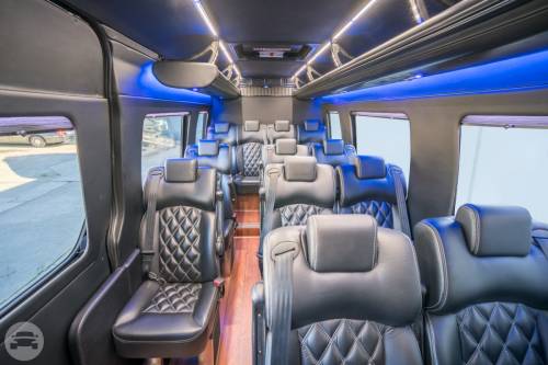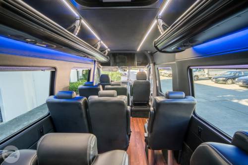 The Mercedes-Benz Executive Sprinter Van come with comfortable leather seats and fit up to 12 passengers, perfect for wedding parties, bachelor or bachelorette parties and birthday parties. The party buses have surround sound, a large flat screen TV with DVD player, a bar and privacy blinds. Trust our drivers to get you around safely on your night out. Includes: Maximum Capacity: Up to 12 passengers Leather Interior Flat Screen TV DVD Player Bar Privacy Blinds