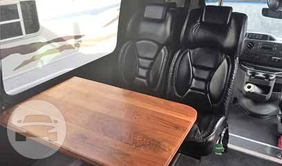 State-of-the-art concept luxury design Rare "VIP limo seating" Premium entertainment system with AM/FM/CD/DVD/auxiliary and Bluetooth capability 42 inch television Ice cooler in the rear 17 inch TV screen in the front Leather reclining captains chairs with arm rests One built-in table for business or pleasure Special effect lighting and color changing ceiling Tinted windows, window shades and personal reading lights Overhead personal items storage compartments Large rear outside luggage compartment Smartphone docking GPS Satellite Navigation