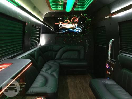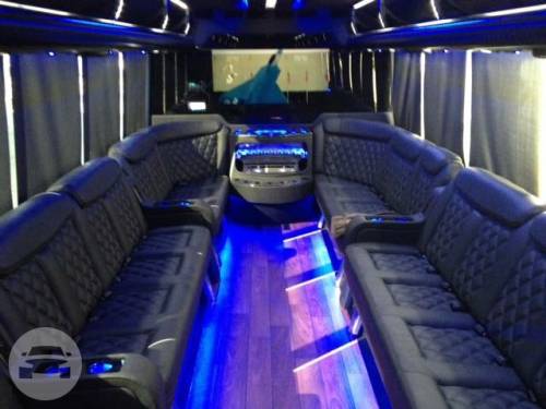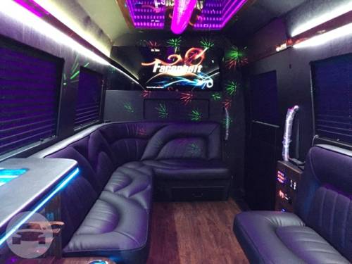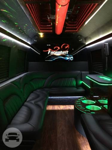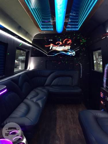 Capacity: 24 passenger limo bus Features: 32 Flat Screen Television Surround Sound System Hardwood Floor Wave Designer Seat iPod, MP3, DVD, DJ Light Show
