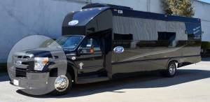 A LITTLE HISTORY The Ford Super Duty is a line of trucks (over 8,500 lb (3,900 kg) GVWR) that were launched by Ford in early 1998 for the 1999 model year. The F-250 to F-550 Super Duties are assembled at the Kentucky Truck Plant in Louisville, Kentucky. The F-650 and F-750 Super Duties were assembled at the Blue Diamond Truck plant in Mexico prior to 2014, when production was shifted to Avon Lake, Ohio. The Super Duty trucks are larger, heavier built series pickup trucks with heavier-duty body-on-frame steel ladder frames, axles, springs, brakes, transmissions, more powerful engines, and all other heavier/bigger components (with much higher payload and towing capacities) than the older traditional equivalent F-250, F-250HD (Heavy Duty), and F-350 Ford truck lines (where from 1987 to 1997 the F-250, F250HD, F-350, and F-Super Duty were all chassis cab models only). The two-wheel-drive and four-wheel-drive model frames are the same in the F-250 and F-350 series, making conversion from a two-wheel-drive model to a four-wheel-drive model less difficult than in other truck models. F-350 chassis cab, F-450 and F-550 frames and suspension are the same between the two-wheel-drive and four-wheel-drive models. SERVICE OFFERED IN THIS VEHICLE Dedicated chauffeur service Winery & City Tours Nightlife service 14, 20, 30 & 40 passengers Black Leather Interior Limo Style Seating (J-seating) Faux Hardwood Style Floors On Board Wi-fi Amazing Sound System Large LCD Screen Optional Dancing Pole
