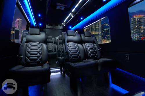 A LITTLE HISTORY The Sprinter is a vehicle built by Daimler AG of Stuttgart, Germany as a van, chassis cab, minibus, and pickup truck. In the past the Sprinter has been sold under the Mercedes-Benz, Dodge, Freightliner, and Volkswagen nameplates. In the United States it is built from complete knock down (CKD) kits by Freightliner. They are now primarily marketed by Mercedes-Benz. Rebadged and re-engined Sprinters are also sold by Volkswagen Commercial Vehicles as the Volkswagen LT and the Volkswagen Crafter. SERVICE OFFERED IN THIS VEHICLE Point to point service Airport transfers Dedicated chauffeur service Shuttle service Nightlife service 11, 14 & 17 passengers Various Luggage Capacity Black Cloth & Leather Interior Shuttle, Executive & Limo Style Seating On Board Wi-fi Large LCD Screen