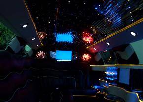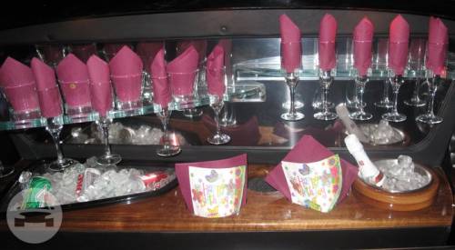 11 - 12 Passengers Travel in complete style and comfort in this special Sprinter Limousine. Amenities include 2- 40" flat panel monitors with stereo surround sound, am/fm, dvd,mp3 player, carbon fiber bar with brushed aluminum counter tops, leather seating, a/c and d/c electrical outlets 2 each, mild to wild led bar and ceiling lighting, storage bins above windows and below seats, separate luggage compartment.