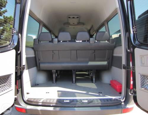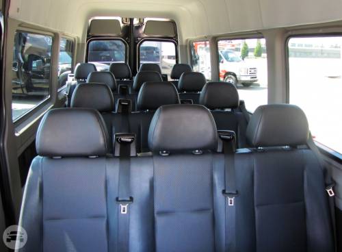 The Mercedes-Benz Sprinter Passenger Van offers transportation with unrivaled style, safety, and innovation. The premium suede seating offers a comforting and warming feel for you and your team. First-class features in our vehicles include room for 14 people, an interior standing height of up to 6 ft. 4.With a spacious rear storage area, and ergonomic durable rear passenger seating with individual headrests and integrated 3-point seat belts at each seating position. PASSENGER CAPACITY: 14 LUGGAGE CAPACITY: 13