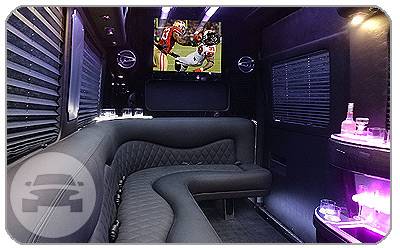 11 - 12 Passengers Travel in complete style and comfort in this special Sprinter Limousine. Amenities include 2- 40" flat panel monitors with stereo surround sound, am/fm, dvd,mp3 player, carbon fiber bar with brushed aluminum counter tops, leather seating, a/c and d/c electrical outlets 2 each, mild to wild led bar and ceiling lighting, storage bins above windows and below seats, separate luggage compartment.
