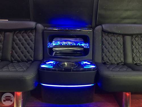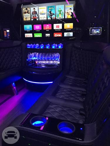 Features // Larger passenger capacity than a standard limousine and distinguished from other SUV limousines by a smoother, softer ride. Quality is reflected throughout this luxurious interior, which features leather seating and the most popular V-style bar with numerous hardwood, lacquer and carbon fiber trim options. Loaded with amenities such as a hi-end sound system, multiple color LCD TVs, I-Pod connectors and equipped with CD/DVD Player. Complimentary liquor, champagne, soft drinks, ice and water. Seating // 1-12 passengers
