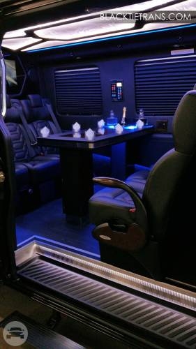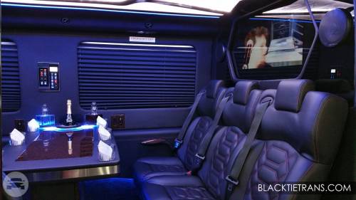The Mercedes-Benz Executive Sprinter Van come with comfortable leather seats and fit up to 12 passengers, perfect for wedding parties, bachelor or bachelorette parties and birthday parties. The party buses have surround sound, a large flat screen TV with DVD player, a bar and privacy blinds. Trust our drivers to get you around safely on your night out. Includes: Maximum Capacity: Up to 12 passengers Leather Interior Flat Screen TV DVD Player Bar Privacy Blinds