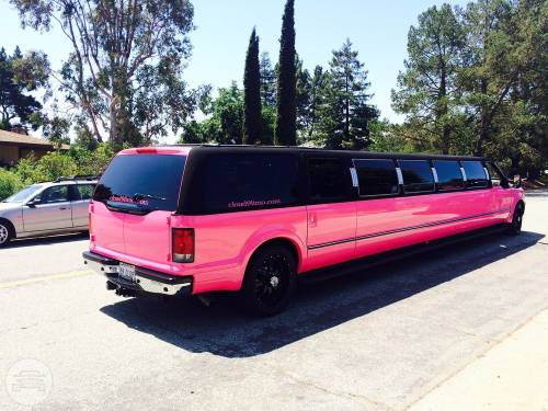 Our 20-24 Passenger Strech Excursion is the perfect vehicle to take the party on the road. 18-24 Passenger Stretch Excursion Excursion “Tuxedo” model, hot pink body with a black canvas top, leather interior. You won’t find a nicer ride than the Excursion Tuxedo Limousine. Your experience will be enhanced with the following amenities of the: VIP Lounge Features large bar areas Stereo system with CD changer & IPod connector 3 flat screen T.V’s Fiber optics throughout Laser light show And much more… All limousines are detailed and serviced on a daily basis to ensure safety, reliability and comfort.