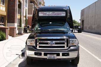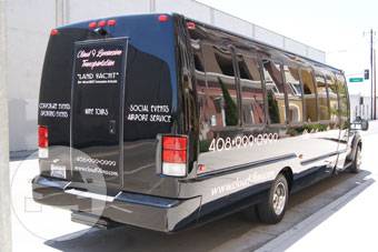 We have the perfect vehicle for your large group. Our 27 Passenger Mini Coach is perfect for day trips and shuttle transportation. 27 Passenger Shuttle Ford Coach Land Yacht Black Blue exterior shuttle bus with gray colored interior. This upright vehicle features a Sony CD changer, , tinted windows, air conditioning and 7 foot standing area so you can walk about the cabin. This vehicle is also equipped with a Voyager microphone/intercom so the driver can communicate with the passengers through the speaker system. This vehicle is perfect for moving large numbers of people in comfort. Must see to appreciate. 27 Passanger Face Format Seats Rear Loggage Space TV Screen DVD/VCR Black Exterior Black Interior All limousines are detailed and serviced on a daily basis to ensure safety, reliability and comfort.