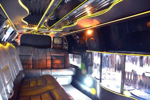 Description: Seating 6 to 8 passengers, ammenities include soft and luxurious leather seating, climate control, mood lighting, two flat screen LCD TVs with DVD player, and a wet bar fully stocked with ice cold drinks. Features: Seating for 6 to 8 passengers Soft and luxurious leather seating Climate Control Mood Lighting Two Flat Screen LCD TVs DVD Player Wet Bar - Fully stocked with ice cold drinks