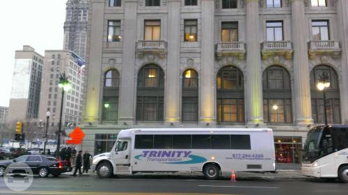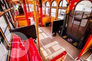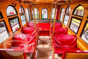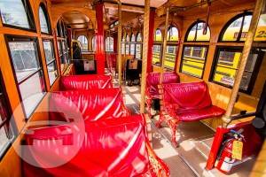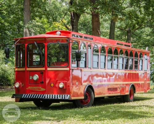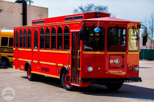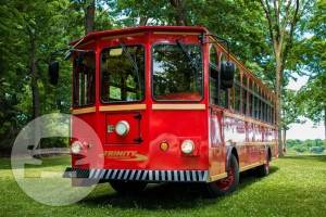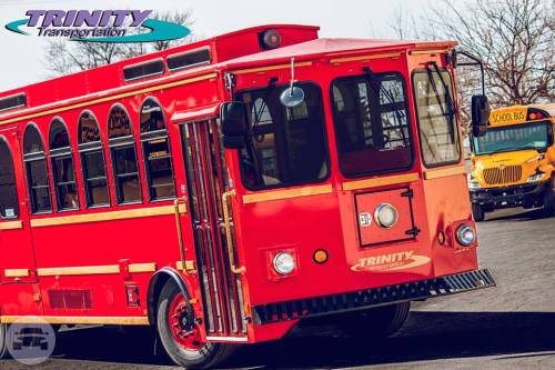 Stand out from the crowd and enjoy the ride in our Trolley! New to the Trinity Fleet is our old fashion head turning trolley, it can accommodate up to 30 passengers and is handicap accessible. Regular event transportation boring you? Turn heads and live it up in our Trolley! Trips downtown never looked so good! Accomodates up to 30 Passengers Radio and PA System A/C and Heat Radio and PA System Luxuriously Crafted Wooden Interior with Leather Seat Cushions Handicap Accessible
