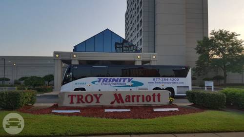 Our Executive Coach is great for corporate travel or your special event. Trinity has executive style coaches that have that “high end” feel that you are looking for. With laminate wood flooring and leather seating, this vehicle will both impress your guests and keep them comfortable. Our executive coach includes features such as leather seating that reclines, DVD/CD player with on-board monitors, air conditioning, power outlets, WiFi, and a restroom. Our Executive Coach will put you in the lap of luxury! Make your party or event even more special with our Executive Coach! Spacious Leg Room Reclining Seatbacks Large Panoramic Windows Power Outlets WiFi Equipped Onboard Restroom TV w/ DVD Player Radio and PA System A/C and Heat Overhead/Underneath Storage