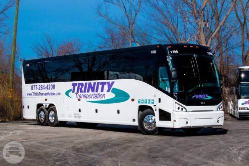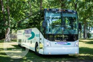 Our largest vehicle can get you all the way to Alaska! Trinity’s largest vehicles are the 56 passenger deluxe motor coaches. With over 30 in our fleet, we are able to transport your group safely and on time. All of our motor coaches are equipped with CD/DVD players, digital monitors, power outlets, WiFi, air conditioning, and a restroom on board. They also include overhead storage and underneath storage for things such as luggage, band instruments, or athletic equipment. Is your group traveling overnight or long distance? This is the option for you! Ride in our largest vehicle with the best amenities on board! Up to 56 Passengers Spacious Leg Room Reclining Seatbacks Overhead/Underneath Storage Onboard Restroom Power Outlets/USB WiFi Equipped CD/DVD Players Panoramic Windows A/C and Heat Radio and PA System