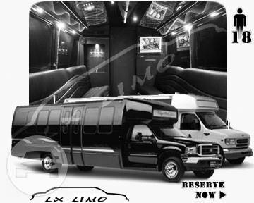 Our Limo Coaches can seat up to 20 passengers. It includes perimeter seating, VCR/TV combo, a wet bar area, and tinted windows.
