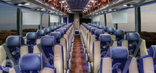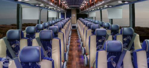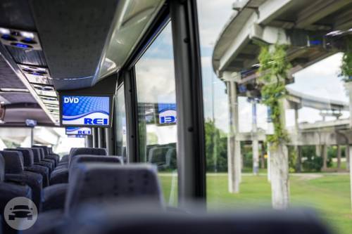 ( Up to 56 Passengers) Houston 56 Passenger Coach Bus provides an unforgettable atmosphere and an unsurpassed ride for as many as 56 passengers and a spacious under cabin luggage compartment. Top Quality Features & Amenities Our 56 Passenger Charter Bus features the following exquisite details & excellent on-board amenities: Complimentary WI/FI Each seat has it’s own Electrical Outlets & USB Outlet Media Connection Luxury Seats with Three-Point Seatbelts Wireless Microphone Wood floors Multiple Large Flat Screen TVs DVD & CD Player Reclining Seats On-Board Restroom We also carry ADA-Compliance Charter Buses