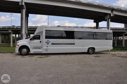 18-28 Passenger Limousine Bus – Party Buses Houston Limo Coach Party Buses provide an unforgettable atmosphere and an unsurpassed ride for as many as 18-28 passengers. Our models’ exquisite features include: Soft, Black Leather Couch Seating Mirrored Stargazer Ceiling Opera Lighting Laser Lighting Strobe Lighting DVD Screens Custom Stereo Sound System Wood Floors IPod / Mp3 Compatible