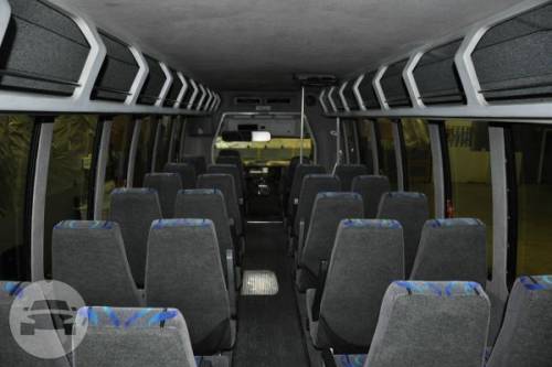 This bus will carry up to 28 passengers. With plenty of cup holders, a built-in cooler, lights, and a great sound system this bus will carry your wedding party or special event group in style and comfort. With perimeter seating this bus is great for seeing and talking to others in your group while traveling.