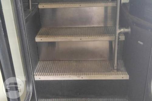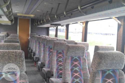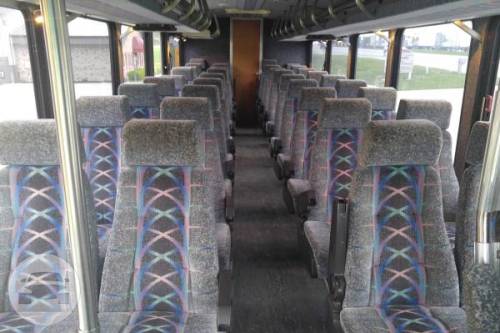 With amenities to include reclining seats, folding footrests, reading lights over each seat, comfortable seating and a smooth ride, this is the perfect bus for a day trip. Other amenities include an audio/video system and an onboard restroom. This bus has overhead storage for small items, 3 small under body storage areas on each side of the bus and 1 very large luggage room behind the main coach area for all your luggage if you have a group traveling to the airport with a lot of luggage. The entry steps are low and easy to access with hand rails on either side.