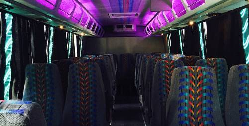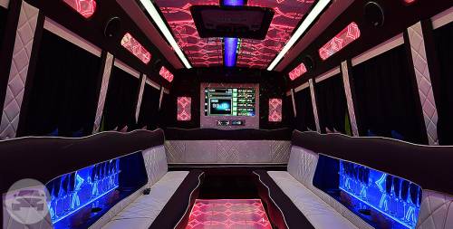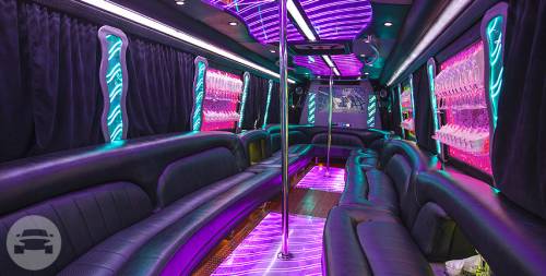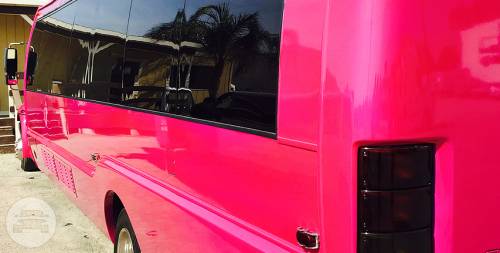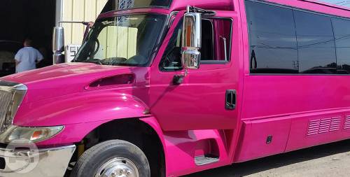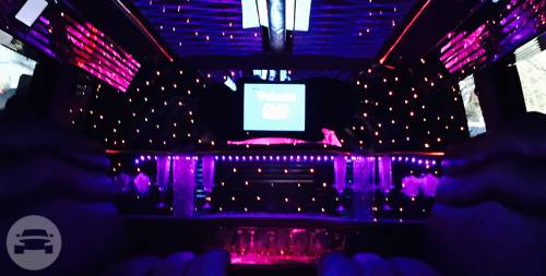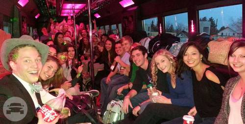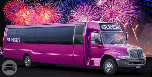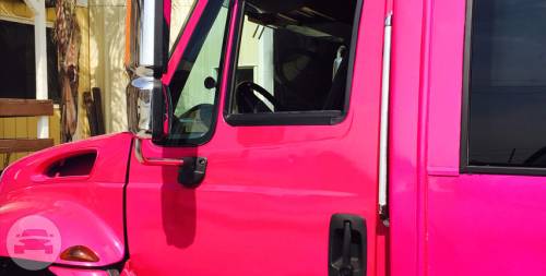 The pink limo party bus is the most unique limo bus experience in Denver! Literally a nightclub on wheels, thepink limo party bus seats up to 40 passengers and comes equipped with iPod integration, sub woofer and amplified sound system, lasers, HD flat screen television(s), a disco floor and a full beverage disco bar. The pink limo party bus is an experience in itself! Why go to the club when you can ride in the club?! Perfect for birthdays, bachelor parties, bachelorette parties, weddings or just a wild night out in the Mile High City. Seats up to 40 passengers. 32 passengers for the most comfortable seating. For booking a REAL party bus, Sunset Limos will give you a free t-shirt when you rent a party bus! Sunset Limos does not provide iPod or smart phone cords.