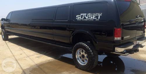 Take a ride in the most unique limo in the Rocky Mountain Region; the Ford Excursion Bigfoot limo Denver. The Bigfoot limo seats up to 20 passengers and comes equipped with iPod integration, sub woofer and amplified sound system, lasers, HD flat screen television(s), a disco floor and a full beverage disco bar. The Ford Excursion Bigfoot is the most unique limo in Denver and is bound to turn heads at any event! Perfect for mountain weddings, prom and homecoming, bachelor parties, bachelorette parties, Denver sporting events or just a night out in the Mile High City. Seats up to 20 passengers. 16 passengers for the most comfortable seating. Sunset Limos does not provide iPod or smart phone cords.