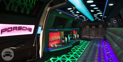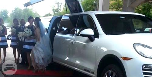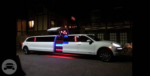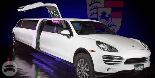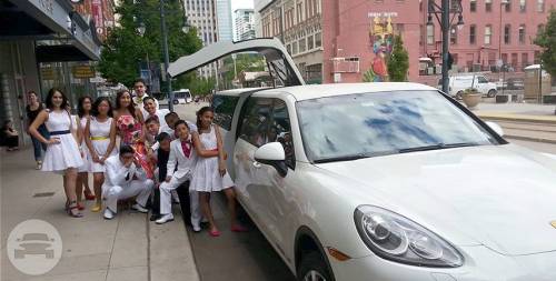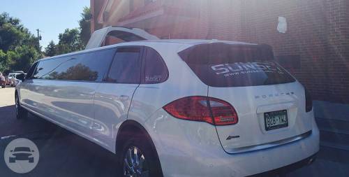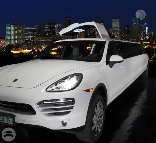 ntroducing a vehicle unique only to Sunset Limos: the Porsche Cayenne limo Denver! Complete with a gull wing door and a 42″ television, the Porsche Cayenne limo has a night club sound system that is second to none! Fully equipped with a DVD, iPod and CD integration as well as lasers and strobe lights. What are gullwing doors? Great question! You may remember the DeLorean time machine from the Back to the Future movie franchise? The doors on this limo open exactly like that. The only Porsche Cayenne limo to rent in all of Denver. Perfect for bachelor parties, bachelorette parties or just a night out in Denver. Seats up to 16 passengers. 14 passengers for the most comfortable seating.Sunset Limos does not provide iPod or smart phone cords.