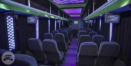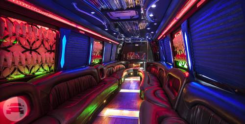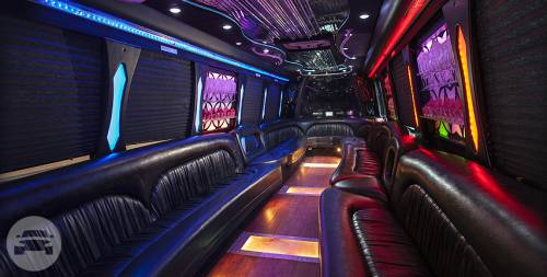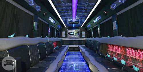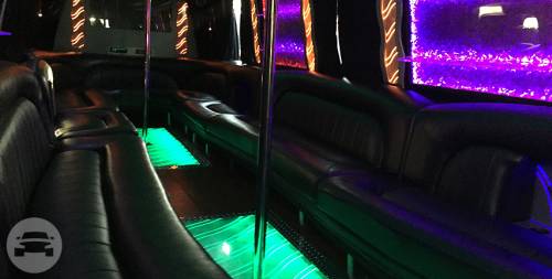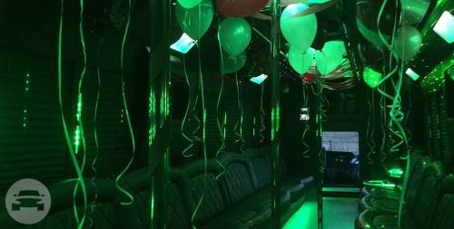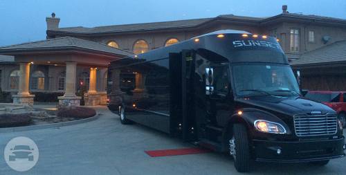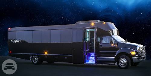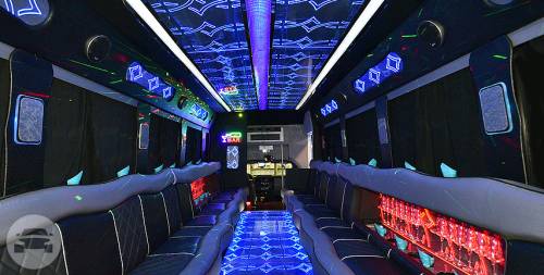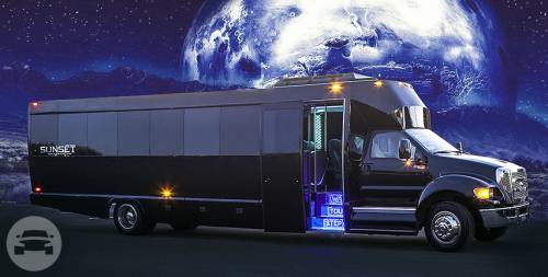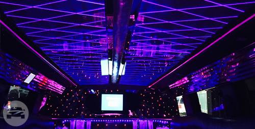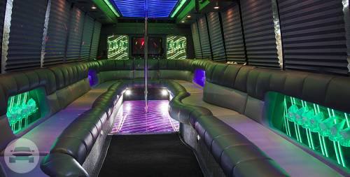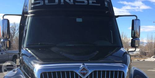 The black Land Yacht is literally a nightclub on wheels. Seating up to 40 passengers and equipped with iPod integration, sub woofer and amplified sound system, lasers, HD flat screen television(s), a disco floor and a full beverage disco bar. The Black Land Yacht is an experience in itself! Why go to the club when you can ride in the club?! Perfect for birthdays, bachelor parties, bachelorette parties, weddings or just a wild night out in the Mile High City. Seats up to 40 passengers. 32 passengers for the most comfortable seating. For booking a REAL party bus, Sunset Limos will give you a free t-shirt when you rent a party bus! Sunset Limos does not provide iPod or smart phone cords.
