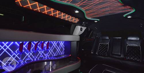 Sunset Limos offers numerous Chrysler 300c limos in Denver! Our black Chrysler 300C limousine is one of the newest additions that updated our old fleet of Lincoln Town Cars. Accommodating up to 10 passengers, the black Chrysler 300C comes equipped with iPod integration, HD flat screen television(s), sub woofer and amplified sound system, green and red lasers, a disco floor and a full beverage disco bar. Cruise around in a stylish, luxury Chrysler 300c limo in Denver. Perfect for small weddings, smaller prom and homecoming parties, birthdays, concerts, corporate parties and transportation to and from Denver International Airport (DIA). Seats up to 10 passengers. 8 passengers for the most comfortable seating. Sunset Limos does not provide iPod or smart phone cords.
