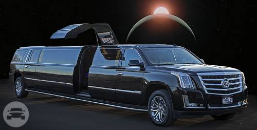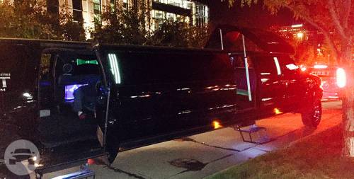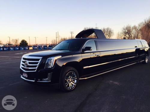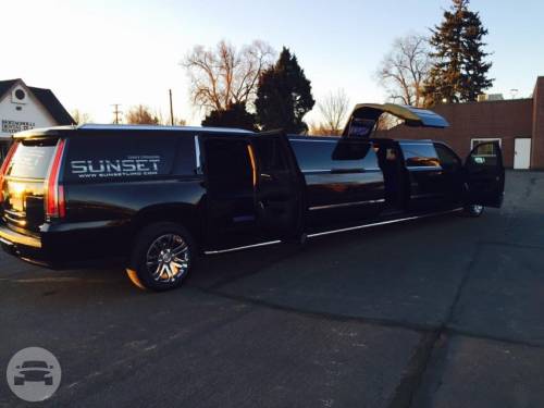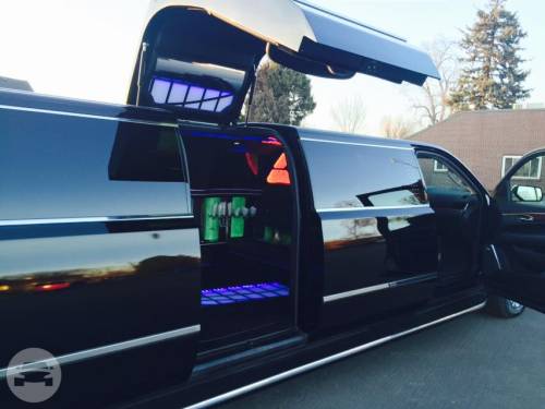 Accommodating up to 20 passengers, the Cadillac Escalade limo Denver comes standard with gullwing doors, iPod integration, sub woofer and amplified sound system, lasers, HD flat screen television(s), a disco floor and a full beverage disco bar. What are gullwing doors? Great question! You may remember the DeLorean time machine from the Back to the Future movie franchise? The doors on this limo open exactly like that. Cadillac is synonymous with luxury and elegance and there is no better way to arrive at your event in the Mile High City than in our black Cadillac Escalade limo. Perfect for bachelorette parties, birthdays and Sweet 16s. Seats up to 20 passengers. 16 passengers for the most comfortable seating. Sunset Limos does not provide iPod or smart phone cords.