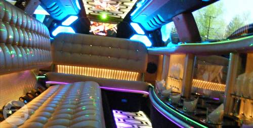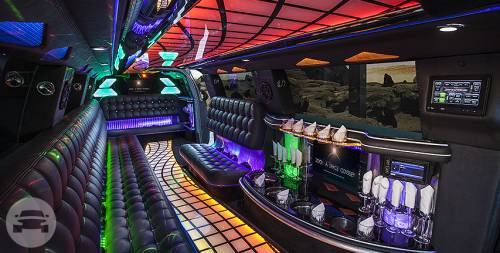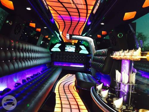 The classiest Hummer limo in all of Denver! Sunset Limos has been offering Hummer limousine transportation in its vast fleet for over a decade. The Hummer H2 pearl white limo seats up to 20 passengers and comes equipped with iPod integration, sub woofer and amplified sound system, lasers, HD flat screen television(s), a disco floor and a full beverage disco bar. Hummers are synonymous with opulence and luxury, so pamper yourself with our Hummer H2 pearl white limo! Perfect for mountain weddings, prom and homecoming, bachelor parties, bachelorette parties, birthday celebrations or just a night out in the Mile High City. Seats up to 20 passengers. 16 passengers for the most comfortable seating. Sunset Limos does not provide iPod or smart phone cords.