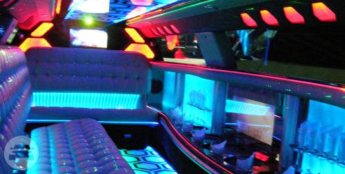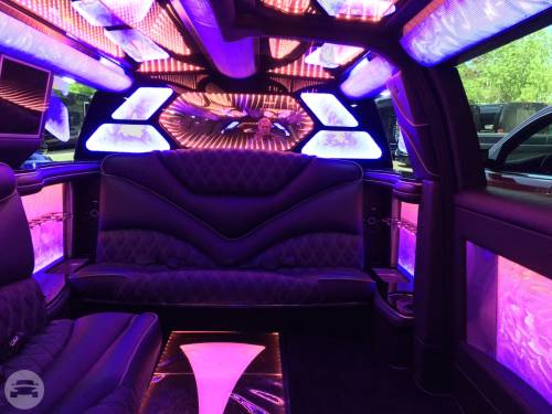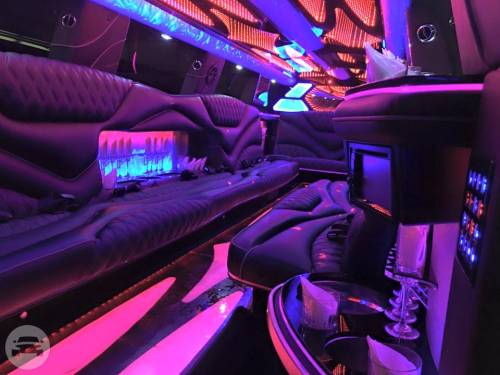 The black 2013 Chrysler 300C Denver limo is Sunset Limos brand new addition to its fleet. Accommodating 12 passengers, the 2013 Chrysler 300C limousine comes equipped with iPod integration, sub woofer and amplified sound system, lasers, HD flat screen television(s), a disco floor and a full beverage disco bar. Larger than its 10 passenger counterpart, the Black Chrysler 300C is ideal for your larger limo events or for just a night out in Denver. Cruise around Denver in a stylish, luxury limousine. Perfect for weddings, prom and homecoming parties, birthdays, concerts, corporate parties and transportation to and from Denver International Airport (DIA). Seats up to 14 passengers. 10 passengers for the most comfortable seating. Sunset Limos does not provide iPod or smart phone cords.