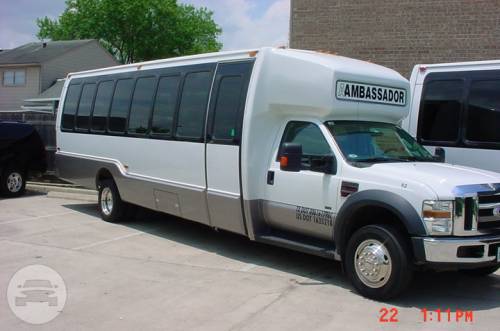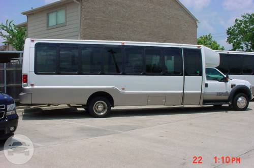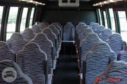 This gleaming shuttle bus has 32 seats and is perfect for student or church trips, taking a large group to a concert or shuttling guests to for a wedding. We can make getting your out of town guests to and from the hotel, to the wedding venue, to reception and back after the reception. Our hourly service offers a surprisingly feasible option for this shuttle option. We also offer pick up and drop off options for this vehicle. To accommodate a smaller group with numerous luggage, these busses come with removable seats to make room for the extra luggage. 32 Passenger Shuttle Bus Features This bus would be able to accommodate a combination of passengers and luggage. With a maximum capacity of 32 passengers, we would be able to accommodate a carry-on per person with some overhead space for light, soft pieces such as handbags, blankets, pillows. With up to 20 passengers, we would be able to accommodate a large checked luggage and a personal bag per person. This bus features, soft cloth seats with individual lap belts, head rests and arm rests. In addition, it comes with an aerodynamic passenger door that greatly reduces outside noise. Each of our buses has an AM/FM radio, televisions and a built-in intercom system which allow for both recreation and communication during your ride.