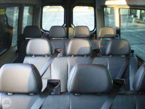 The ever useful and practical Mercedes 12 Passenger Van provides roomy accommodations for both passengers and their luggage. A great and affordable vehicle for transporting groups of people easily through town and to the airport. Best economical small group transportation Up to 12 Passengers With Luggage 12 Medium Piece Luggage Capacity Limo Tinted Windows A/C & Climate Controlled GPS Navigation System Cup Holders