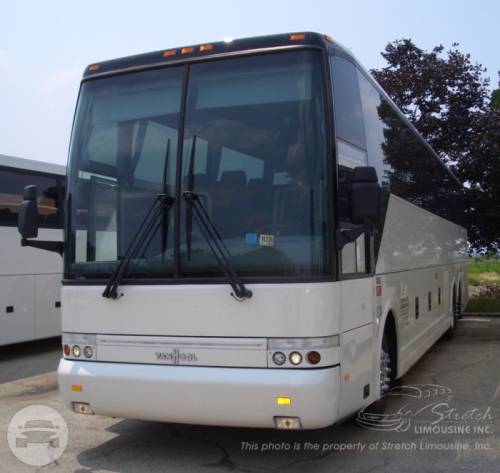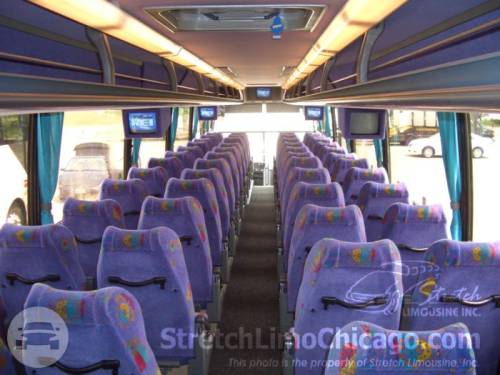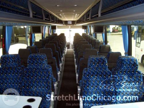 Full sized, 54-Passenger motorcoach. Thank you for visiting our Chicago charter bus web page. Here at Stretch Limousine, we strive to provide a full range of services including a fleet of motor coaches seating 54 passengers. We are able to provide charter bus service from Chicago land area to anywhere in the continental United States. Planning an event? Local or long distance services, ranging from corporate outings to parties, tours, and school trips. Our buses are top of the line motor coaches with specious cabins and comfortable seating which add to the comfort of any trip. All of our chicago buses are equipped with a bathroom and an entertainment center with multiple screens. Our professional drivers hold a CDL license with passenger endorsement and years of experience to ensure a safe and reliable service for your event.