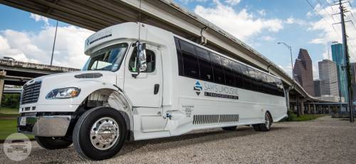 Our largest shuttle bus holds up to 37 passengers and is designed for luxury and comfort. If your whole family or church group needs transportation, there is no better choice than Colony Limousine’s modern shuttle bus. We can arrange pickup and drop off service for just about any location in the metropolitan Houston, Texas area. That means that even if you live in the city suburbs, including Katy, Sugar Land, Pasadena, Baytown, Conroe and The Woodlands, we can get your group to your destination comfortably and efficiently! Consider this bus for a day trip out of town for a large group as an economical option. Perfect for long rides out of town or within the city. This vehicle offers the ultimate comfort of great AC system and comfortable seating. Short of the strobing lights and black leather seating this bus can easily be used for a group on a mission for a good time. This 37 passenger is fully equipped to handle a fun group of passengers who would like to have a lively service with the safety and comfort of a shuttle bus. This 37 passenger is a perfect blend of class and capacity that makes it perfect for many occasions. Our hourly service offers a surprisingly feasible option for this shuttle option. We also offer pick up and drop off options for this vehicle. 37 Passenger Shuttle Bus Features This vehicle has an AM/FM stereo, a multi-disk CD/DVD player, AUX port and flash drive connections. This bus has been updated with a fantastic sound system. A large screen TV up front for easy viewing from the back. There is a built-in intercom system which allow for both recreation and communication during your ride. This bus features, soft cloth seats with individual lap belts, head rests and arm rests. In addition, it comes with an aerodynamic passenger door that greatly reduces outside noise.