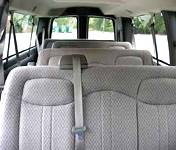 Economy Passenger Van Features Everyone can ride comfortably in a passenger van from Colony Limo. Our vans feature both cloth bench seating and privacy glass so that all of the passengers can rest as they ride to the destination. You won’t have to worry about finding space for everyone either! Our Economy van can accommodate a combination of passengers and luggage. The maximum capacity would be thirteen passengers plus one passenger would be sitting up front next to the driver. This arrangement would be ideal for a service with no luggage. A group of ten passengers with only one large checked luggage and some carry-ons. This arrangement would be ideal for a group going on a short trip or service that require some room for luggage. Up to seven passengers would be able to carry at least 2 large luggage. We can remove all but one bench to accommodate large boxes and long pieces of equipment for up to 4 passengers.