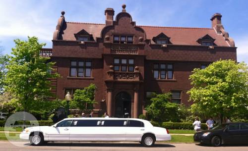 12 Passenger 180″ Lincoln Town Car Limousine All white “Tuxedo style” 12 passenger Lincoln Town Car Limousine with a cloth black top available for rent in Merrillville, IN. This vehicle is equipped with 3 flat screen monitors, dvd player, cd player, and it is iPod / mp3 player ready. This limousine has 4 large built in coolers, mirrored ceiling, and neon color changing lights. This limousine is perfect for weddings, proms, and concerts in Northwest, Indiana.