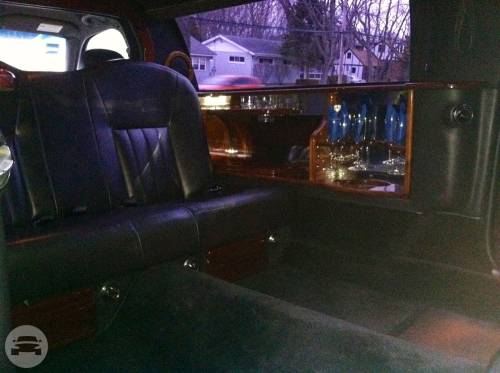 Black 6 passenger Lincoln Town Car Limousine. This vehicle is equipped with a flat screen monitor, dvd player, cd player, and it is iPod / mp3 player ready. This limousine has 2 large built in coolers and neon color changing lights. This limousine has a beautiful wooden bar area.