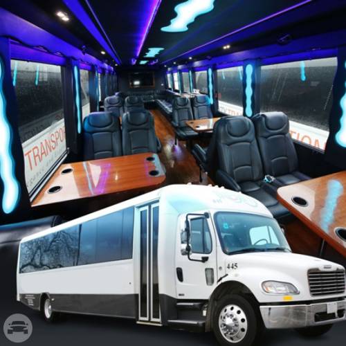 Up to 28 Passenger Seating Capacity Customized Leather Interior Multiple Large Flat Panel TV’S 2- DVD/CD With up to 12 speaker Surround Sound Stereo Multi colored – Fiber Optic Mood Lighting, Laser Lighting package Interior Bars With Sinks This bus has a rest room. Separate Rear Luggage Area in the rear This bus has a completely redone interior. Brand new wood floors, new leather seating, Smart TV’s for your media files or slide shows, this bus has a restroom. This 28 passenger party bus has the cleanest and loudest sound system in the Chicago Land Area. Bluetooth and dvd player. Leave your CDs at home but bring your AUX cord we dont supply one. Radio syncs to any media player. WIFI WE are one of the few companies in Chicago that feature a party bus with a bathroom. 28 passenger Party Bus Party bus for Weddings Party bus for Tailgate Wedding Limo Bus Charter Bus service Tailgate to Norte Dame Wine tour to Michigan Chicago to Michigan wine tour party bus rental Proms and Teen Dances Team Outing Night on the town Concerts Party bus for Chicago Sporting events Our 28 passenger Party Buses are the ultimate in luxury limo buses. During the day they have the ability to be elegant wedding limo buses and at night can turn into rolling nightclubs party bus. With state of the art sound systems, multiple LCD TV’s, DVD players, and Auxiliary cord accessibility-just bring your cord and your device, built in coolers, and a re-movable dance pole. This 28 passenger party bus creates the ultimate night out and is sure to impress you and your guests, regardless of age. This limo bus/party bus is t the perfect choice for Weddings, Prom, Tailgate, Sporting Event, Concert,