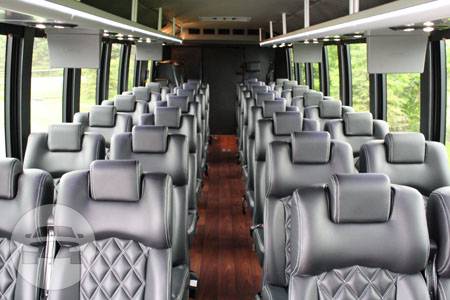 High Back Reclining Leather Seats Laminate Wood Floors Overhead Luggage Space Undercarriage Luggage Available Upon Request Premium Sound System TV/DVD/CD Player/iPod Connections Seat Belts on All Seats WiFi Available Upon Request / Additional Charges May Apply
