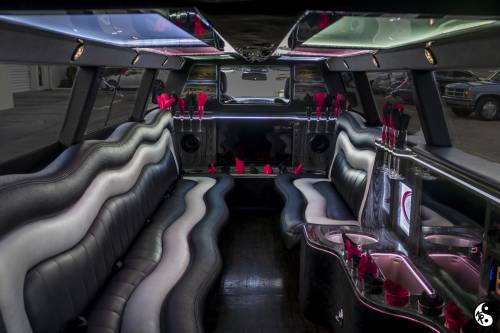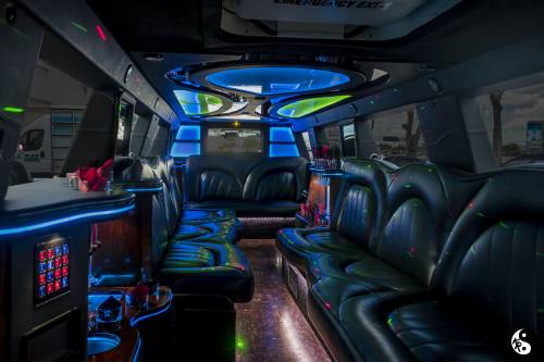 Equipped with everything available to a Stretch Limo! Laser machine, strobe lights, Bluetooth radio, 20 inch Italian Rims with white inserts, wood floors, T.V & DVD, VIP room in the rear and much more. This extraordinary limousine can accommodate up to 18 passengers. This vehicle does not carry luggage.
