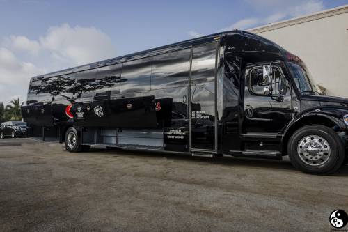 The newest to our Fleet! our brand new 2016 Limo/Party Bus will impress you as it is fully equipped with luxury accessories, state of the art audio system with surround sound speakers, CD & DVD players and Ipod connectivity, all around fiber optic and special effect lighting, Bars, flat screen TV's (4), VIP salon and/or corporate section with Captain chairs and Mahogany tables (excellent for lap top, presentations, serving or else) and much more. This luxury Salon on wheels will accommodate up to 30 Passengers very comfortably. This beautiful Limo Bus offers wrap around seating for 24 passengers and an additional 8 Leather Captain chairs with Mahogany Tables, ideal for Laptop use and it will allow any special meeting or corporate event travelers to work or prepare a presentation while traveling. We guarantee that this is the nicest Limo Bus in South Florida. Whether you are celebrating a special event with family or friends, or a Bachelor or Bachelorette party or for a corporate outing or function, our new luxury Limo Bus is certainly the ideal vehicle for any type of event and group.