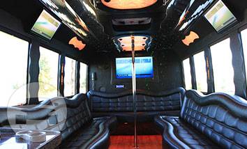 Leather Perimeter Seating, Fiber Optic Lighting, Neon Lights, LED TVs, DVD Player,Surround Sound System and Crystal Bar.