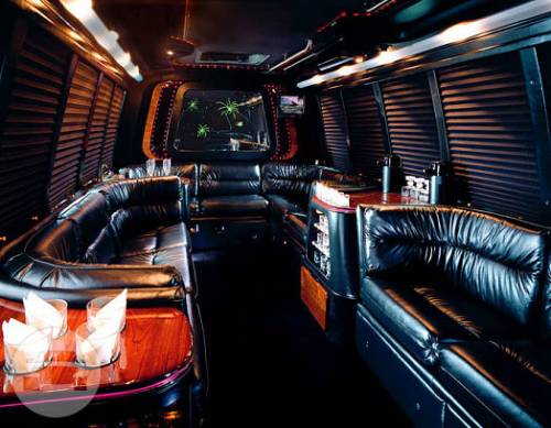 Leather Perimeter Seating, Fiber Optic Lighting, Neon Lights, LED TVs, DVD Player, Surround Sound System and Crystal Bar