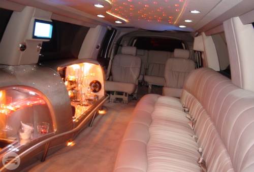 Be wary of any stretch SUVs you see that claim to hold more than 12 passengers. First, they violate Federal DOT safety standards which forbid single axle stretches to hold more people (they need extra axles and to be registered as buses to pass). Second, most of these high capacity stretches have two bench seats facing each other meaning there is about 10 inches of leg room shared between you and the person in front of you. Our SUV has one bench seat facing a beverage center allowing you to ride in comfort. 6-12 Passengers DVD Player Onboard iPod/MP# PLayer plug-in Vehicle stocked with ice/soda/water Glassware is provided for your use Privacy partition Tinted windows for privacy