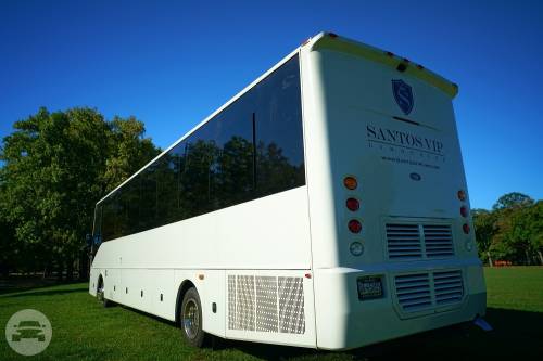 42 passenger capacity (4) Large 55″ LCD TV’s Touch Screen Controls Custom 3500W Pioneer Digital Sound System AM/FM/CD/DVD with USB Port Large Panoramic Windows w/Privacy Shades Under Carriage Luggage Compartments Interior & Exterior Strobe Lighting Dual Bars with LED Lighting Custom wrap around two-tone seating Color Changing LED Lighting Stainless steel ceiling with fiber optic lighting Color Changing Fiber Lighting Cherry wood Floor with LED Lighting Restroom w/Fresh Water System Brand New 42 passenger Luxury Limo Coach Party Bus Bigger is definitely better and simply put our ALL NEW 42 passenger NJ Luxury Limo Coach Party Bus is amazing! Perfect for transporting large groups for NJ Weddings, NJ NY Prom, Bachelor & Bachelorette Parties or even Tailgating at your favorite game! When we set out to build this luxurious NJ Limo Bus we knew we wanted it to be sleek, stylish and have an elegant night club feel… the Santos VIP NJ Luxury Limo Coach Party Bus is all that and then some. We want our clients to feel like VIP’s every time they step into our NJ Limo Coach Party Bus so we have spared no expense in trying to accomplish that. Some of the features include custom two toned wrap around leather seating, (2) LED back lit bars with multiple deep ice chests, rear VIP area with Stripper Pole (removable), (4) 55” LCD TV’s, premium Pioneer surround sound system with Blue Ray DVD, large panoramic windows with privacy shades, stainless steel ceiling with fiber optic lighting, color changing LED lights, laser lights, cherry wood floor, restroom with odorless fresh water system and much, much more. Call us today and experience firsthand the ultimate 42 passenger Limo Coach Party Bus in NJ from Santos VIP Limo!