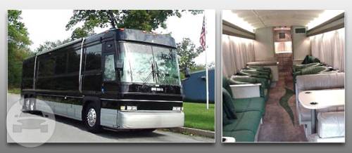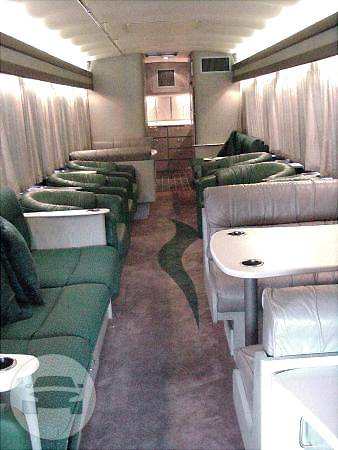 This bus holds 20 passengers and is fully loaded with couches, tables, swivel leather seating, TV/VCR, serving area for cocktails/beverages, refrigerator, sink, marbled counter tops, microwave, privacy window shades, tiled lavatory, outdoor 10' awning. This bus is perfect for entertaining in top shelf fashion or relaxing with all the comforts of home while traveling locally or touring our great country.