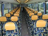 Our 61 passenger coach bus charter are comfortably equipped with: Large Tinted Touring WindowsCD Player AM/FM Audio SystemTV’s & DVD Player PA/Microphone SystemOverhead Climate ControlsFront & Rear AC & Heating SystemIndividual Reclining Captain SeatsLarge Storage/Luggage AreaOverhead Storage AreaPrivate Sanitized RestroomInternet WIFI (Special Request)Electrical Outlets (Special Request)