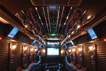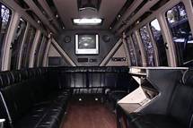 Seating Capacity: (32 Passenger Max); are comfortably equipped with: Neon Lights & Fiber Optic LightingTinted Windows For PrivacyPremium Surround Sound Audio System Bose Sound System With CD/MP3 PlayerCrystal Bar AreaLCD – Plasma TV’s & DVD PlayerFront & Rear AC & Heating System Plush Leather Seating