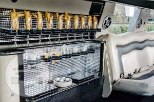 8-10 Passengers IPOD / AUX Connection TV,DVD, CD/ Stereo AM-FM Premium Deluxe Bar/ Complimentary Beverages Mirror Glass Ceiling Top Fiber Optic Lighting Privacy Dividers Climate Control Bar with Ice Bins, Glasses & Flutes